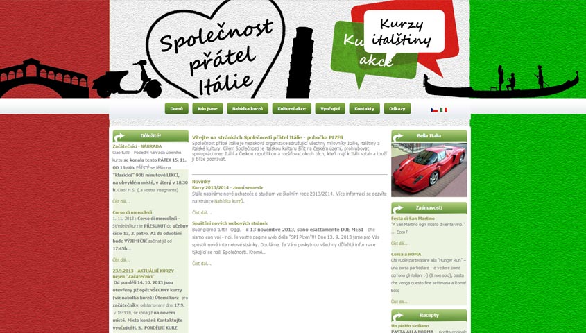 Vytvoření designu a webu jako sponzorský dar pro Společnost přátel Itálie Plzeň.